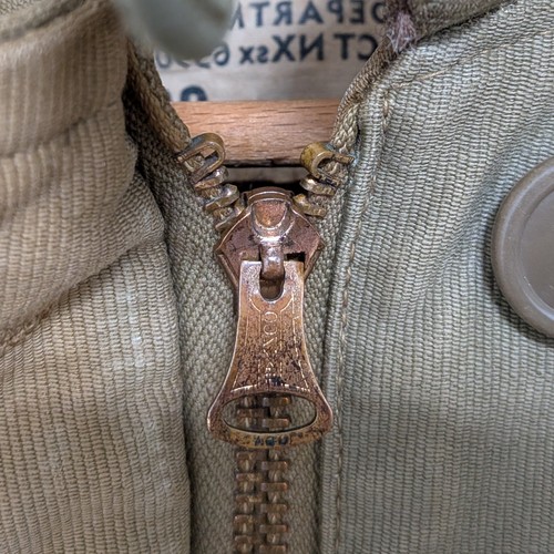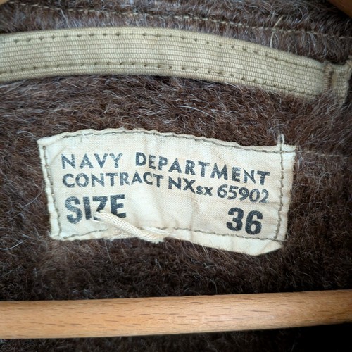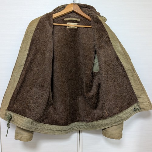 40年代 US製 N-1デッキジャケット サイズ 着丈66cm、身幅53cm、肩幅44cm、袖丈(肩から)61cm ZIPはCONMERのコの字止めです。襟のアルパカの毛抜けがあります。所々にスレ、ほつれ、シミ、汚れ、色褪せあります。STORESにもう少し写真を載せております。