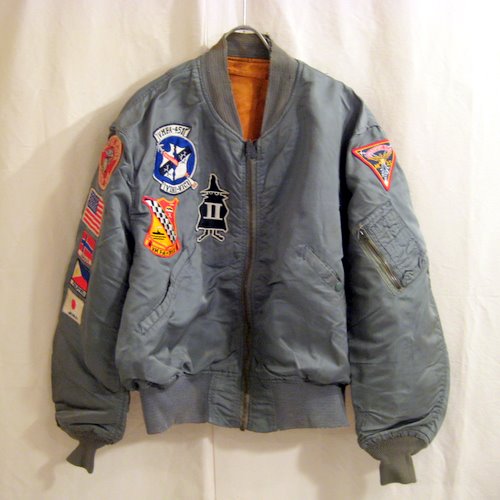 1966年 ALPHA社L2-B MIL-J-7448H サイズ 着丈62cm、着幅62cm、肩幅52cm、袖丈(リブを含めて)60cm ジップはCONMARです。左手首に幅5cm、縦3cmほどのタタキでのリペア痕があります。インナー部分に若干の汚れがあります。全体的に細かな、汚れやダメージは数か所あります。ワッペンだけを見てもかなり味のある物だと思います。