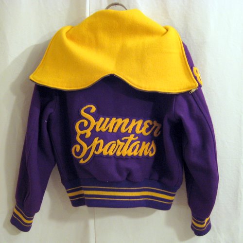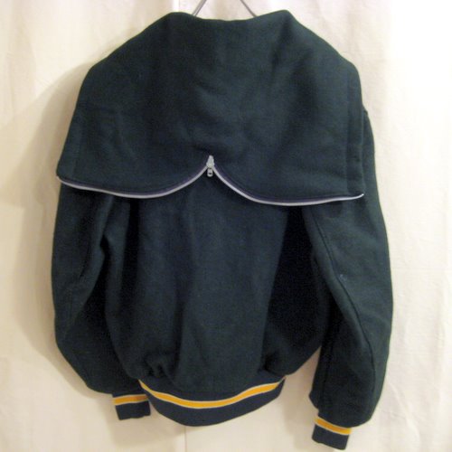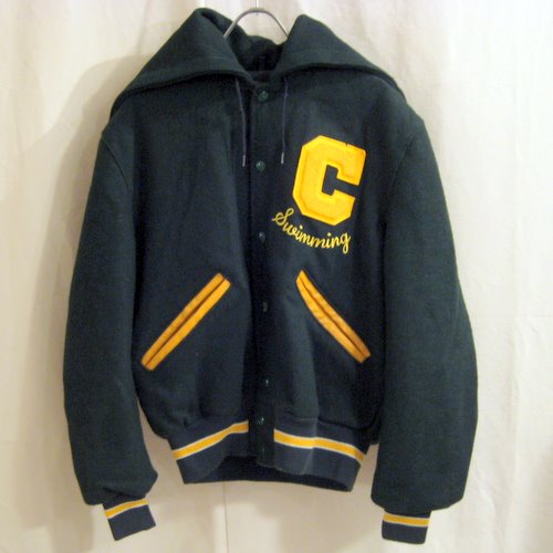 80年代 US製 フード付きスタジアムジャケット サイズ 着丈53cm、着幅50cm、肩幅41cm、袖丈56cm フード部分のジップはIDEAL