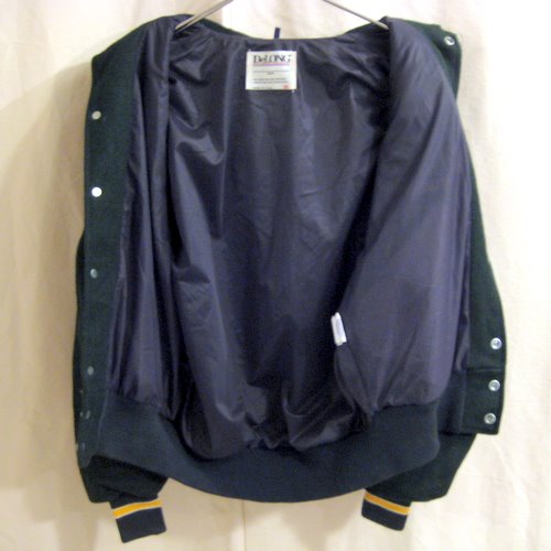 80年代 US製 DeLongフード付きスタジアムジャンパー サイズ 着丈63cm、着幅58cm、肩幅46cm、袖丈62cm フード部分のジップはIDEAL