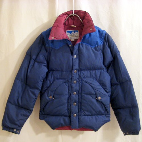 80年代 US製 Powderhorn Mountaineering 2WAYダウンジャケット サイズ 着丈60cm、着幅42cm、肩幅37cm、袖丈58cm 写真では分かりづらいですがバック襟部分、ヨーク部分にうっすらと白いシミの様なものがあります。