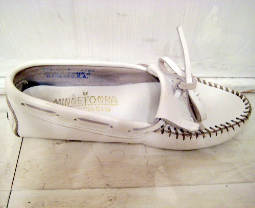 US製 MINNETONKAデッキシューズ サイズ 22cm~22.5cmくらい アウトソール 24cm ホワイト
