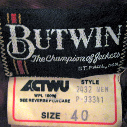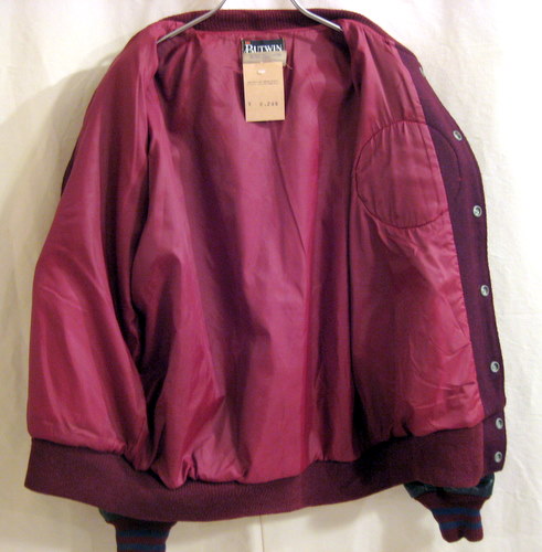 70年代 US製 BUTWINレザースリーブスタジャン サイズ 着丈,62cm、着幅57cm、袖丈(脇下~)46cm パープル×ネイビースリーブ