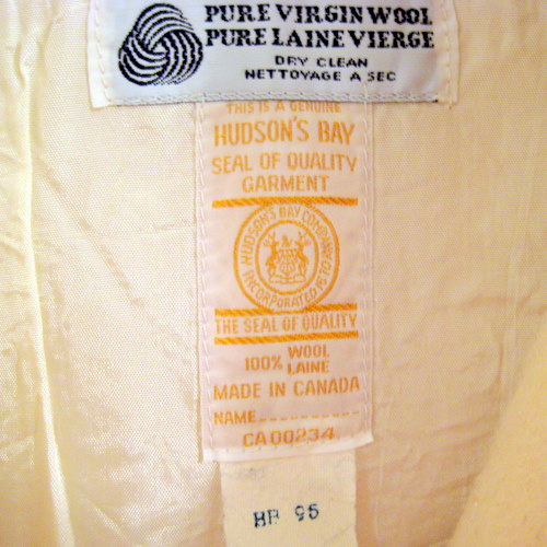 CANADA製 HUDSON’S BAYウールコート サイズ 着丈70cm、着幅48cm、肩幅39cm、袖丈59cm ライナーWOOL100% 左手首のボタンが一つ欠損しております。
