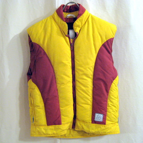 70年代 エディバウアーダウンベスト サイズ 着丈61cm、着幅47cm、肩幅45cm ジップはTALONです。イエロー×エンジ