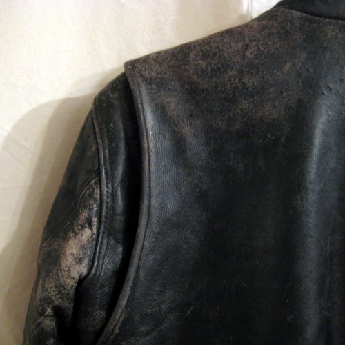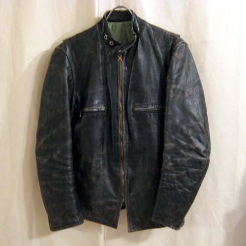 50年代 ホースハイドジャケット サイズ 着丈63cm、着幅45.5cm、肩幅42cm、袖丈60cm ジップはベル型のCONMARで片爪です。 写真の様に全体にスレがありますので着用感はかなりあります。ライナーにダメージはありません。