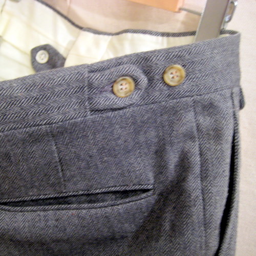 70年代 Andrew’sウールパンツ サイズ ウエスト83cm-78、股下68cm、股上27cm ジップはTALON42です。ベルトループは無くサイドに2か所ボタンが付いているのでそちらで調節するタイプです。