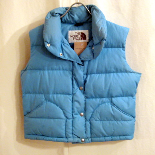 80年代 The North Faceダウンベスト サイズ 着丈46cm、着幅49cm、肩幅40cm バックに汚れ、ヤケがあります。色はミントグリーンです。