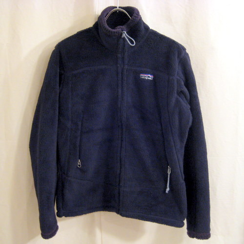 02年 US製 パタゴニアR2フリースジャケット サイズ 着丈61cm 着幅51cm、肩幅42cm、袖丈61cm ポリエステル100% フロント右ポケットのゴム紐がありません。ブラック