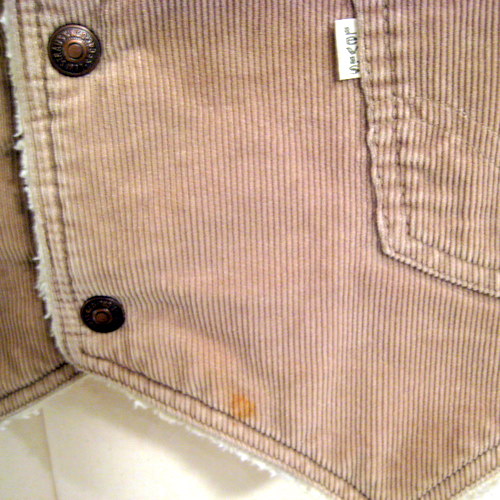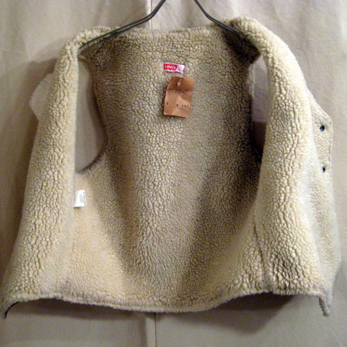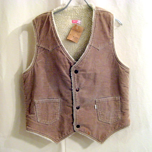 70年代 US製 Levi’sコーデュロイボアベスト サイズ 着丈54、着幅51cm、肩幅36cm フロント左下に汚れがあります。スナップボタンにはLevi strauss&coの刻印入りです。