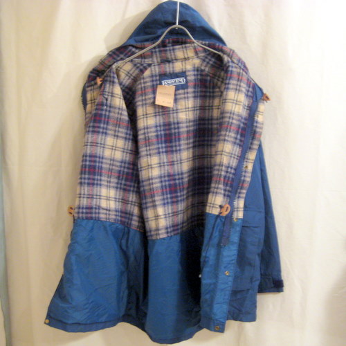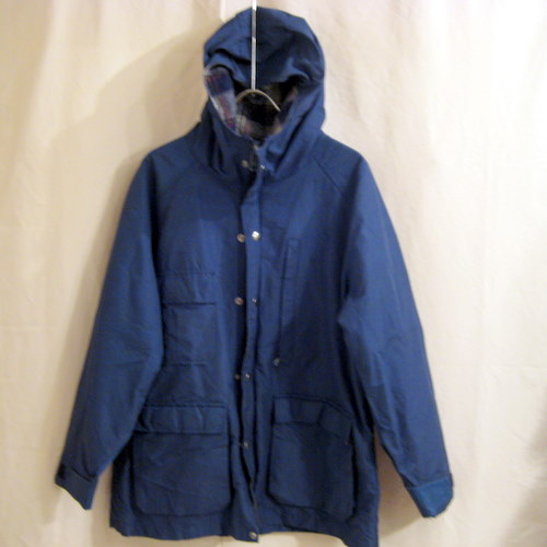 80年代 US製 LANDS’ENDマウンテンパーカー サイズ 着丈80cm、着幅58cm ラグランスリーブ 裏地付き ジップはYKKのダブルジップです。ネイビー
