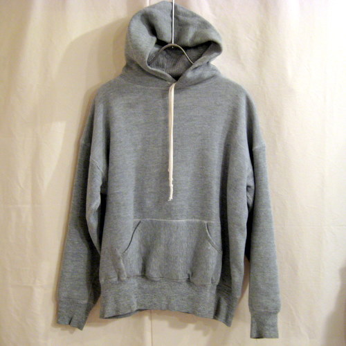 60年代 裏サーマル地スエットパーカー サイズ 着丈60cm、着幅56cm、肩幅60cm、袖丈50cm 袖はセットインスリーブです。フロント右側に長さ4cmほどのリペア痕があります。霜降りグレー