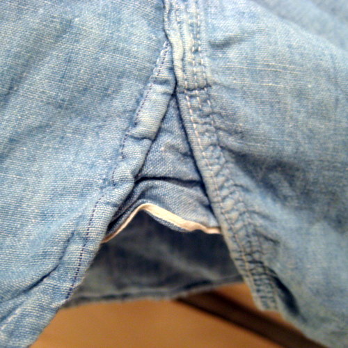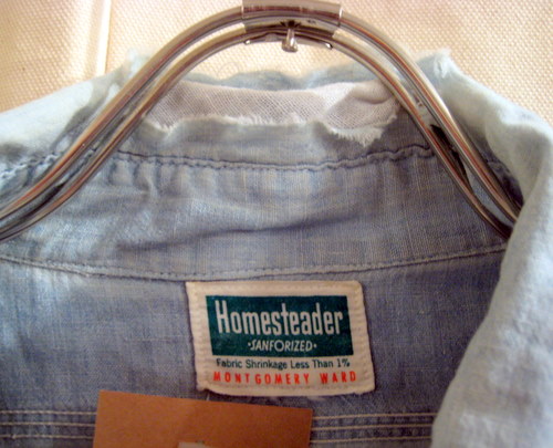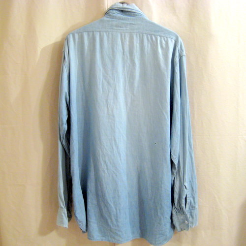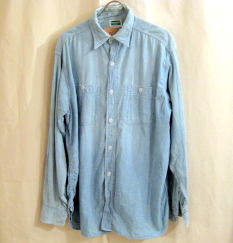 50年代 MONTKGOMERY WARDシャンブレーシャツ サイズ 着丈78cm、着幅68cm、肩幅49cm、袖丈62cm 襟にダメージと写真以外にもフロントとバックにも穴が開いています。袖にもダメージがありますので雰囲気重視の方にお勧めです。