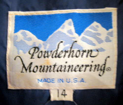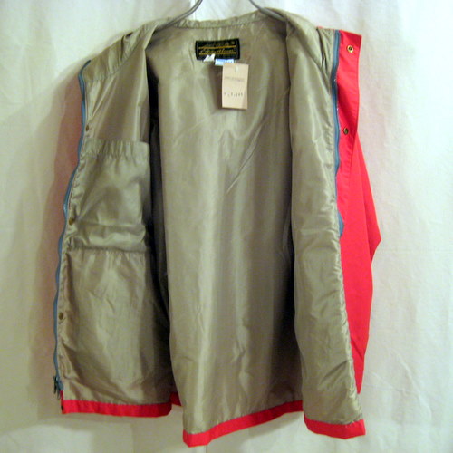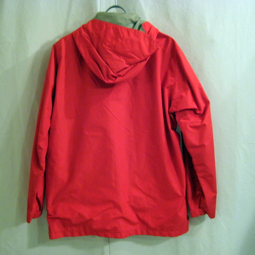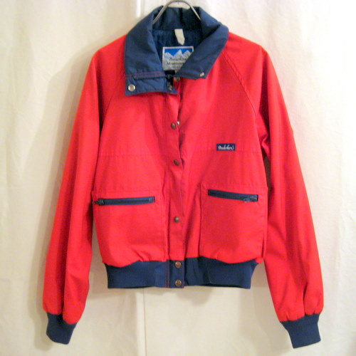 US製 powderhorn ナイロンジャケット サイズ 着丈59cm、着幅50cm、袖丈(脇下~)54cm レッド×ネイビー フロント右ポケット下辺りに2cmほどの線上の汚れがあります