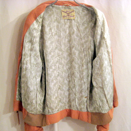 ~60年代 NELCOレーヨンギャバディンブルゾン サイズ 着丈62cm、着幅48cm、肩幅40cm、袖丈45cm ジップはNYNCOです。オレンジを薄くしたような色です。