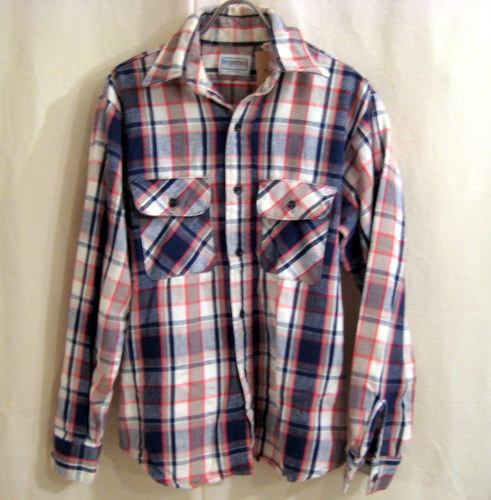 80年代 US製 FIVE BROTHERフランエルシャツ サイズ 着丈67cm、着幅56cm、肩幅46cm、袖丈59cm ホワイト×ネイビー×レッド