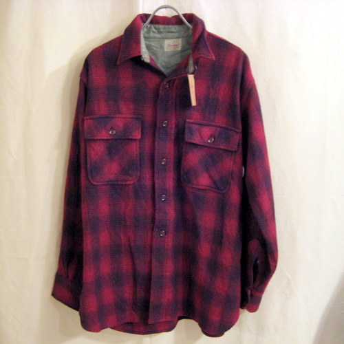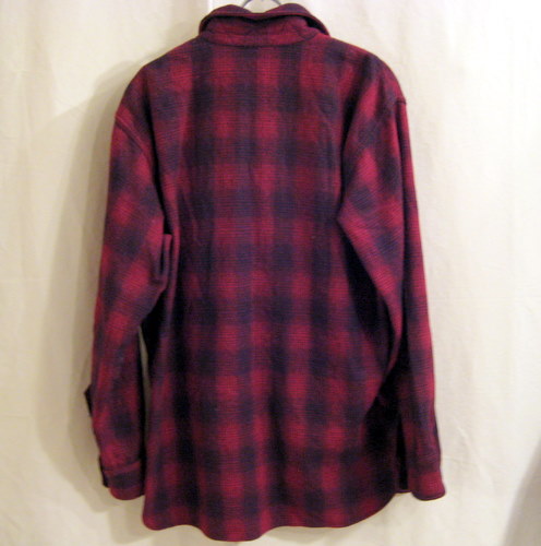 60年代 North Countryウールシャツジャケット サイズ 着丈61cm、着幅48cm、肩幅40cm、袖丈55cm バックに数か所生地が薄くなっている箇所があります。左腕にうっすらと黒い汚れがあります。ネコ目ボタン レッド
