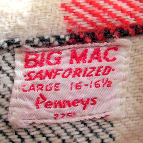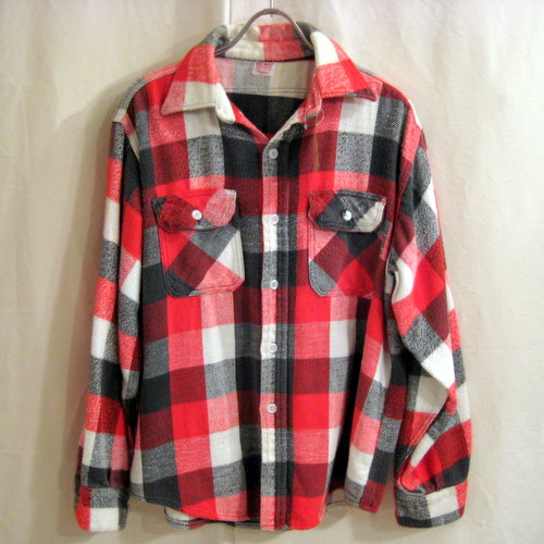 60年代 US製 Penneys BIGMAC フランネルシャツ サイズ 着丈68cm、着幅56cm 肩幅47cm、袖丈57cm ブラック×ホワイト×レッド