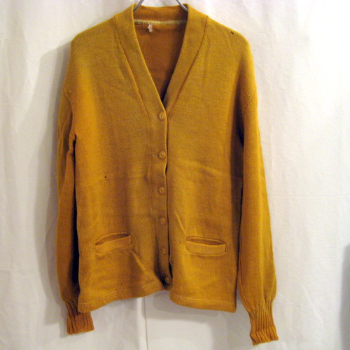 50年代 レタードカーディガン サイズ 着丈63cm、着幅49cm、肩幅46cm、袖丈61cm ボタンはネコ目の樹脂ボタンです。左肩、右胸辺りに2か所と他に細かな穴があります