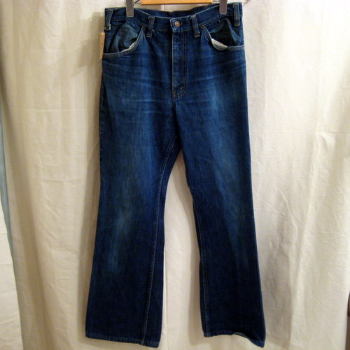 70年代 リーバイス フレアタイプのオーバーオール サイズ ウエスト84cm、股下86cm、総丈(ストラップも含めて)165cm 裾は黒のシングルステッチ オレンジのタブは切り取られています。