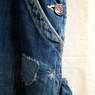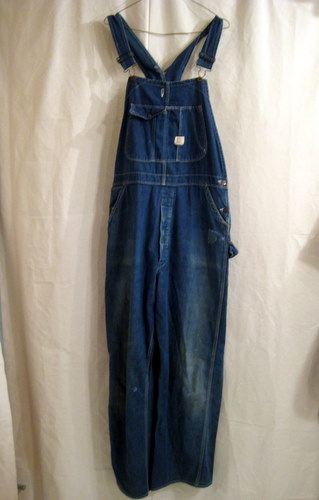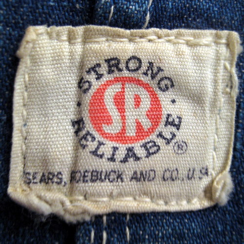 40年代~50年代 シアーズ系ブランドのSR(STRONG RELIABLE)のオーバーオールです。 サイズ ウエスト88cm、股下79cm、総丈(ストラップも含めて)159cm リペアがフロントとバックに1箇所づつあります。 かんぬきは赤です。