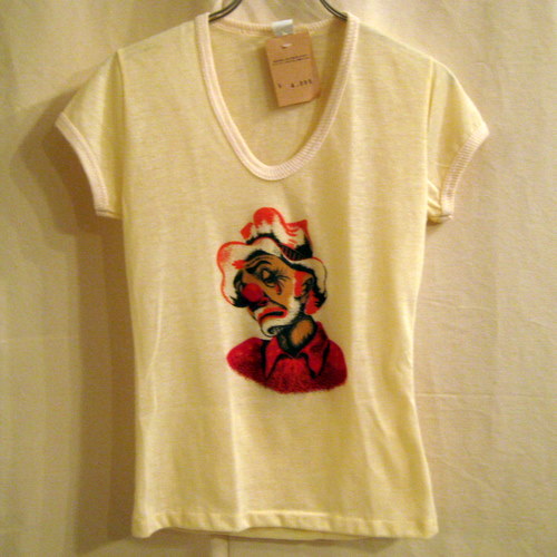 泣きピエロプリントVネックT サイズ 着丈56cm、着幅37cm、肩幅32cm アイボリー