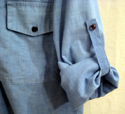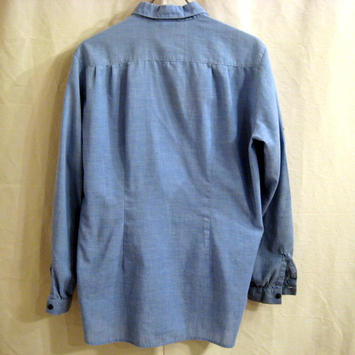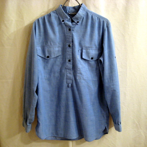 70年代 Levi’s Big Eプルオーバーシャンブレーシャツ サイズ 着丈69cm、着幅52cm、肩幅41cm、袖丈56cm 両腕にボタンが付いていて腕の中にストラップが付いています。右前掛けです。